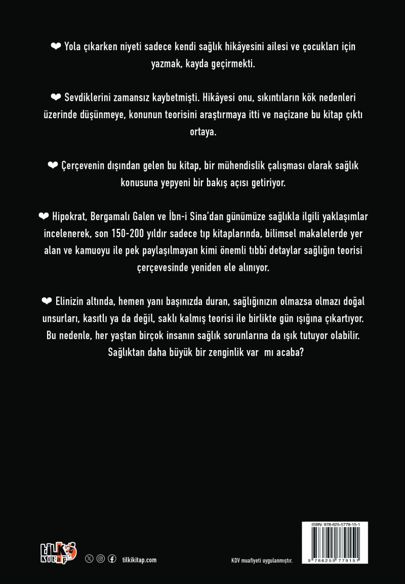 ♡ Çerçevenin dışından gelen bu kitap, bir mühendislik çalışması olarak sağlık konusuna yepyeni bir bakış açısı getiriyor. Elinizin altında, hemen yanı başınızda duran, sağlığınızın olmazsa olmazı doğadan unsurları teorisi ile birlikte gün ışığına çıkartıyor. Bu nedenle, her yaştan birçok insanın sağlık sorunlarına da ışık tutuyor olabilir.