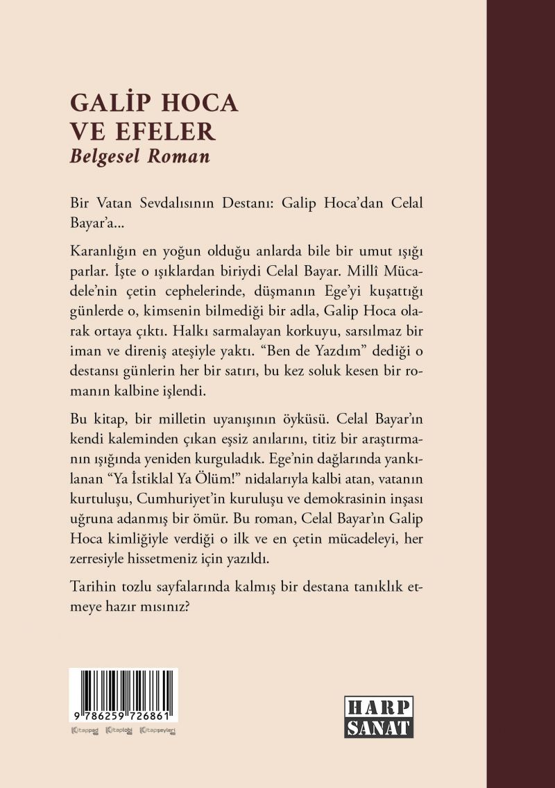 Karanlığın en yoğun olduğu anlarda bile bir umut ışığı parlar. İşte o ışıklardan biriydi Celal Bayar. Millî Mücadele'nin çetin cephelerinde, düşmanın Ege'yi kuşattığı günlerde o, kimsenin bilmediği bir adla, Galip Hoca olarak ortaya çıktı. Halkı sarmalayan korkuyu, sarsılmaz bir iman ve direniş ateşiyle yaktı. "Ben de Yazdım" dediği o destansı günlerin her bir satırı, bu kez soluk kesen bir romanın kalbine işlendi.