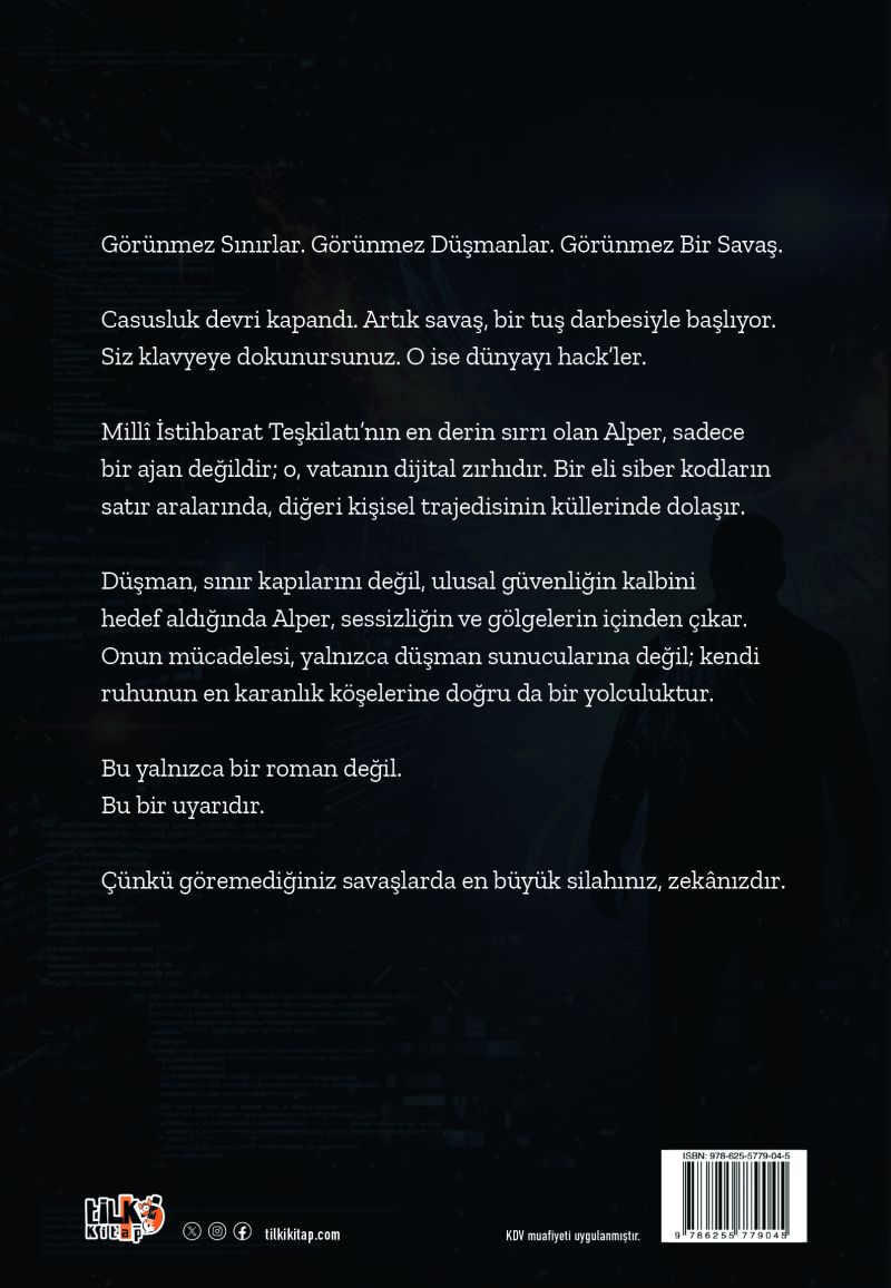 Bu kitap sadece satırlardan ibaret bir kurgu değil ülkemizin görünmez duvarlarında yankılanan sessiz çığlıkların, gölgelerde verilen amansız mücadelelerin; bazen bir siber kodun derinliklerinde, bazen de bir kurşunun namlusunda biten hayatların yansımasıdır. Bu hikâye, Millî İstihbarat Teşkilatı'mızın (MİT) siber dehası, kod adı "Alper" olan bir kahramanın hem kişisel trajedileriyle hem de vatan aşkıyla yoğrulmuş destanıdır.