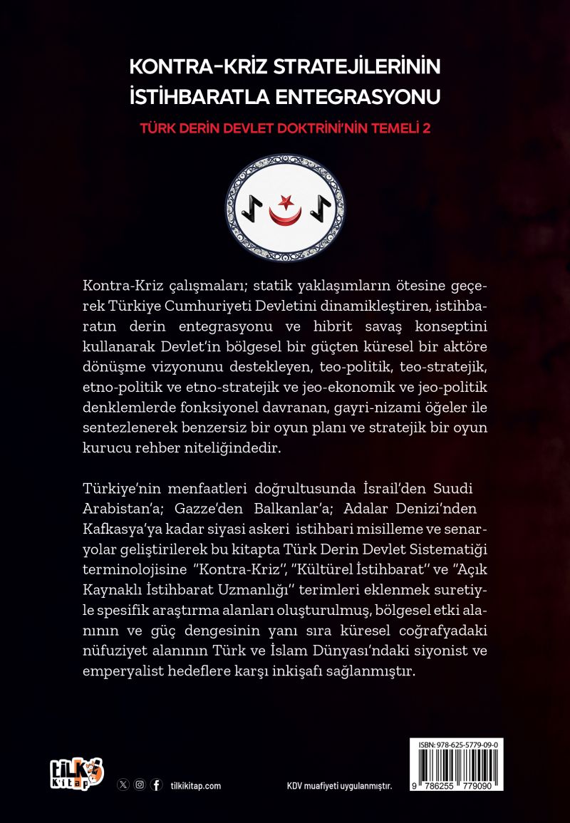 Türkiye’nin menfaatleri doğrultusunda İsrail’den Suudi Arabistan’a; Gazze’den Balkanlar’a; Adalar Denizi’nden Kafkasya’ya kadar siyasi askeri istihbari misilleme ve senaryolar geliştirilerek bu kitapta Türk Derin Devlet Sistematiği terminolojisine “Kontra-Kriz’’, “Kültürel İstihbarat’’ ve “Açık Kaynaklı İstihbarat Uzmanlığı’’ terimleri eklenmek suretiyle spesifik araştırma alanları oluşturulmuş, bölgesel etki alanının ve güç dengesinin yanı sıra küresel coğrafyadaki nüfuziyet alanının Türk ve İslam Dünyası’ndaki Siyonist ve emperyalist hedeflere karşı inkişafı sağlanmıştır.