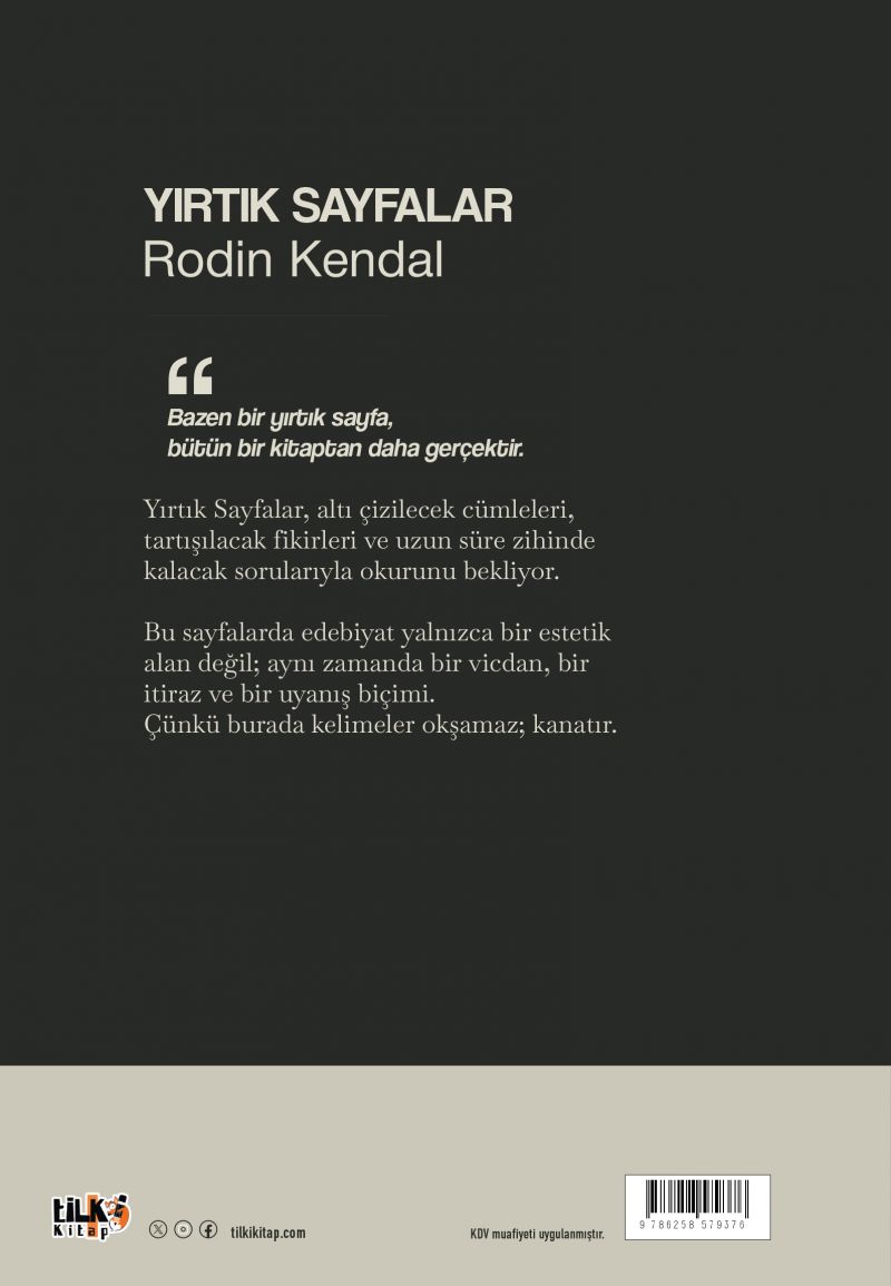 Yırtık Sayfalar, altı çizilecek cümleleri, tartışılacak fikirleri ve uzun süre zihinde kalacak sorularıyla okurunu bekliyor.