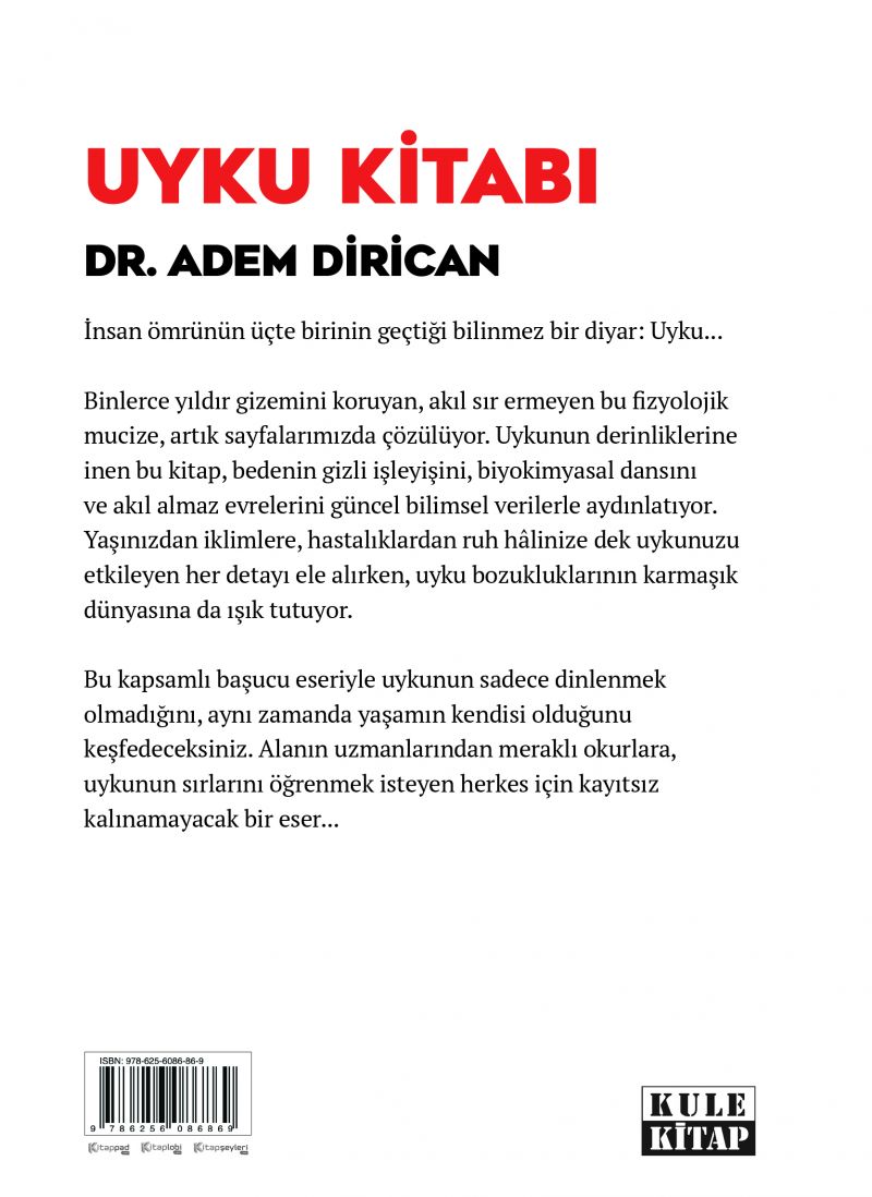 Binlerce yıldır gizemini koruyan, akıl sır ermeyen bu fizyolojik mucize, artık sayfalarımızda çözülüyor. Uykunun derinliklerine inen bu kitap, bedenin gizli işleyişini, biyokimyasal dansını ve akıl almaz evrelerini güncel bilimsel verilerle aydınlatıyor. Yaşınızdan iklimlere, hastalıklardan ruh hâlinize dek uykunuzu etkileyen her detayı ele alırken, uyku bozukluklarının karmaşık dünyasına da ışık tutuyor.