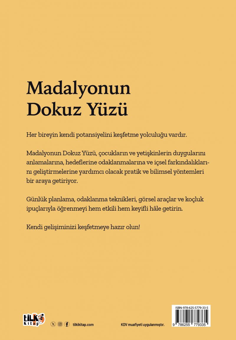 Madalyonun Dokuz Yüzü, çocukların ve yetişkinlerin duygularını anlamalarına, hedeflerine odaklanmalarına ve içsel farkındalıklarını geliştirmelerine yardımcı olacak pratik ve bilimsel yöntemleri bir araya getiriyor.