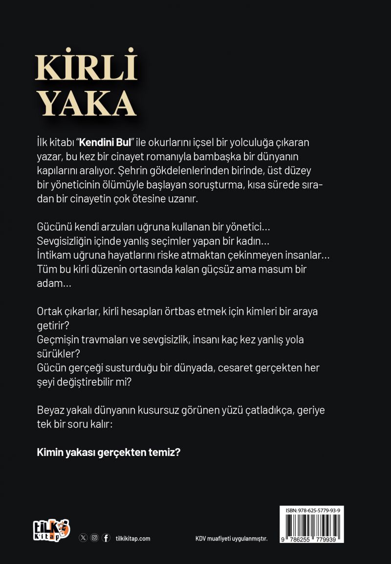 İlk kitabı "Kendini Bu" ile okurunu içsel bir yolculuğa çıkaran yazar, bu kez bir cinayet romanıyla bambaşka bir dünyanın kapılarını açıyor okurlarına. Şehrin plazasında bir üst yöneticinin ölümüyle başlayan soruşturma, kısa sürede bir cinayetin çok ötesine uzanıyor. Elde ettiği gücü kişisel zevkleri için başkalarını yok etme pahasına kullanan bir yönetici, sevgisizliğin içerisinde yaşarken yanlış seçim yapan kadınlar ve tüm bu hesapların dışında güçsüz ve masum bir adam... Kötülüğün sona ermesinde kim daha fazla inisiyatif alacak?