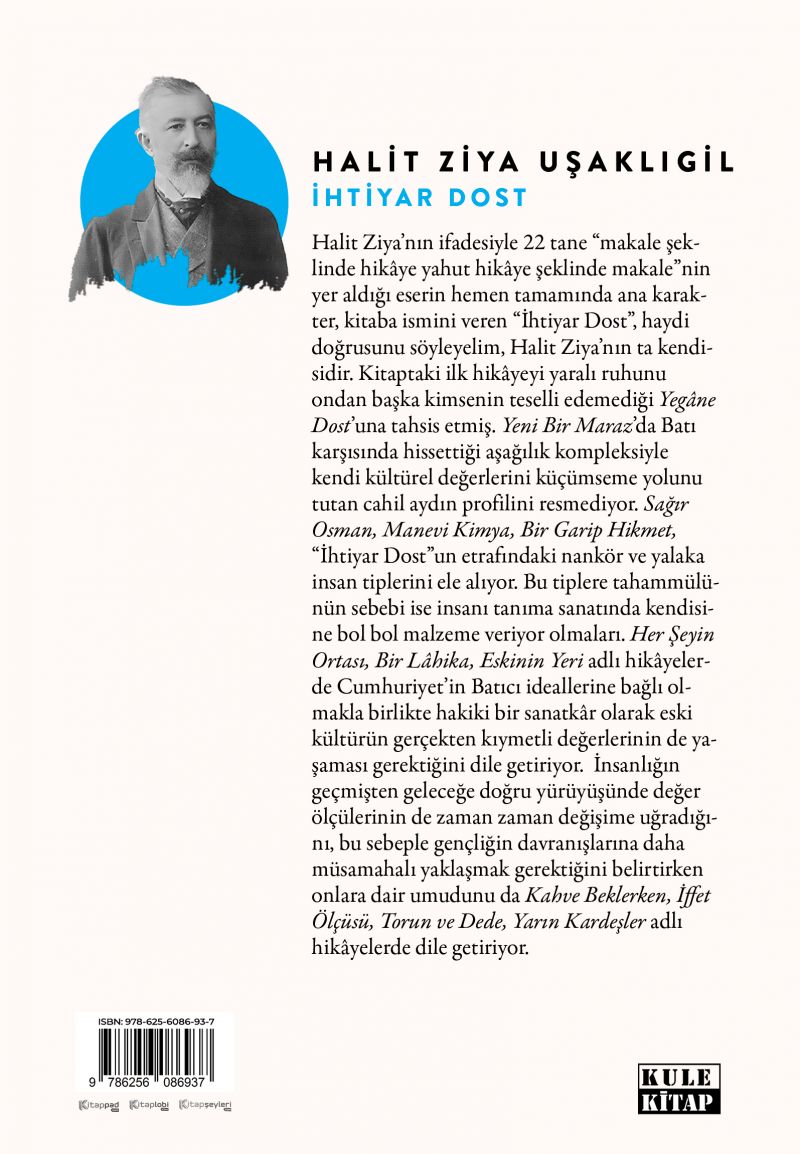 Halit Ziya’nın ifadesiyle 22 tane “makale şeklinde hikâye yahut hikâye şeklinde makale”nin yer aldığı eserin hemen tamamında ana karakter, kitaba ismini veren “İhtiyar Dost”, haydi doğrusunu söyleyelim, Halit Ziya’nın ta kendisidir. Kitaptaki ilk hikâyeyi yaralı ruhunu ondan başka kimsenin teselli edemediği Yegâne Dost’una tahsis etmiş. Yeni Bir Maraz’da Batı karşısında hissettiği aşağılık kompleksiyle kendi kültürel değerlerini küçümseme yolunu tutan cahil aydın profilini resmediyor. Sağır Osman, Manevi Kimya, Bir Garip Hikmet, “İhtiyar Dost”un etrafındaki nankör ve yalaka insan tiplerini ele alıyor. Bu tiplere tahammülünün sebebi ise insanı tanıma sanatında kendisine bol bol malzeme veriyor olmaları. Her Şeyin Ortası, Bir Lâhika, Eskinin Yeri adlı hikâyelerde Cumhuriyet’in Batıcı ideallerine bağlı olmakla birlikte hakiki bir sanatkâr olarak eski kültürün gerçekten kıymetli değerlerinin de yaşaması gerektiğini dile getiriyor. İnsanlığın geçmişten geleceğe doğru yürüyüşünde değer ölçülerinin de zaman zaman değişime uğradığını, bu sebeple gençliğin davranışlarına daha müsamahalı yaklaşmak gerektiğini belirtirken onlara dair umudunu da Kahve Beklerken, İffet Ölçüsü, Torun ve Dede, Yarın Kardeşler adlı hikâyelerde dile getiriyor.