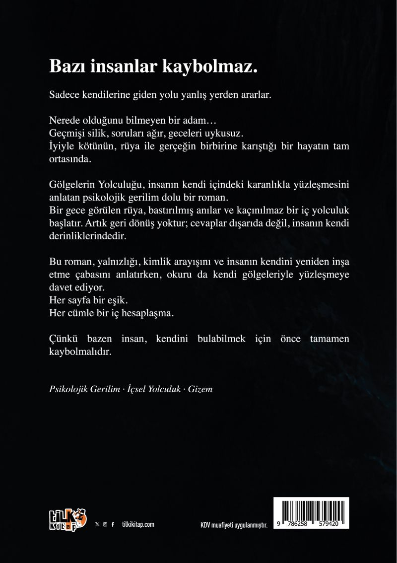 Gölgelerin Yolculuğu, insanın kendi içindeki karanlıkla yüzleşmesini anlatan psikolojik gerilim dolu bir roman.